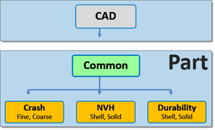 The CAD representation is typically the original source of information of what a physical part will look like. It forms the basis of the Common representation, which in turn is the basis of all subsequent discipline specific mesh representations. A part can contain multiple representations.