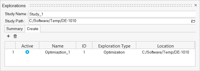 Figure 4.The Design Explorer browser opens. You can see the newly created optimization exploration. Additional exploration entities will appear here as well.