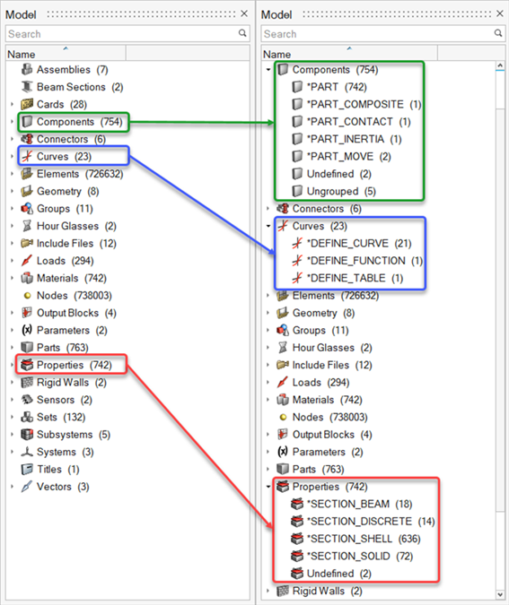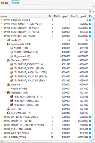 Additional categories for undefined and ungrouped entities are listed under each entity folder when applicable. The ‘Undefined’ folder contains all entities that a solver deck refers to but are not present in the model. The ‘Ungrouped’ folder contains all entities that are without a solver card.