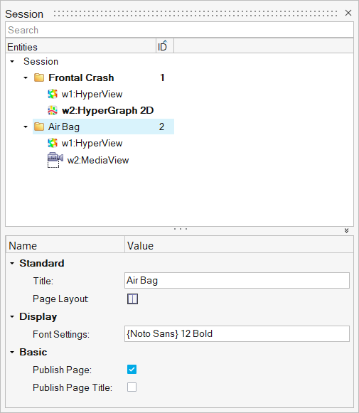 The fields displayed in the Entity Editor are dependent on whether the Page or Window entity type is selected from the Session Browser tree.