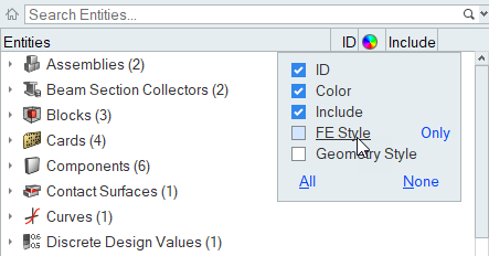 - If available, use the Entities tab to select the entity types that are displayed in the browser.