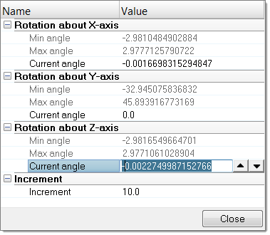 The Entity Editor is also used to modify the position of bodies. You can directly define the angle of rotation to apply in each axis of rotations in which the selected body is able to move.