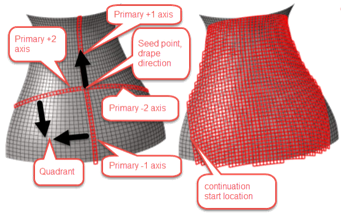 • Yes – kinematic drape elements prop0agate from the primary direction mesh lines into each of the possible four quadrants.