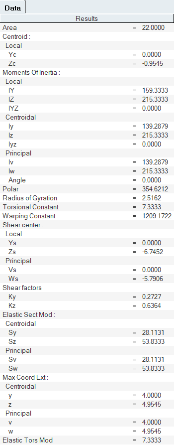 Whenever HyperBeam computes the section properties of the current section, it displays them in the Results pane.