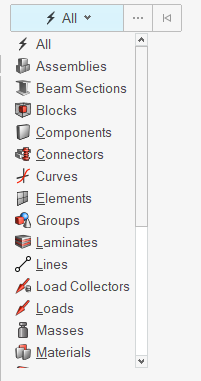 - Select FE entities such as elements, loads, and groups that belong to