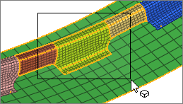- Select entities (nodes, elements) by surface edge. HyperWorks finds entities that are attached to each other without crossing a feature line. The feature line can be adjusted using the Angle slider. Attached, adjacent surfaces or elements are progressively selected when the angle between them is less than or equal to the specified feature angle.