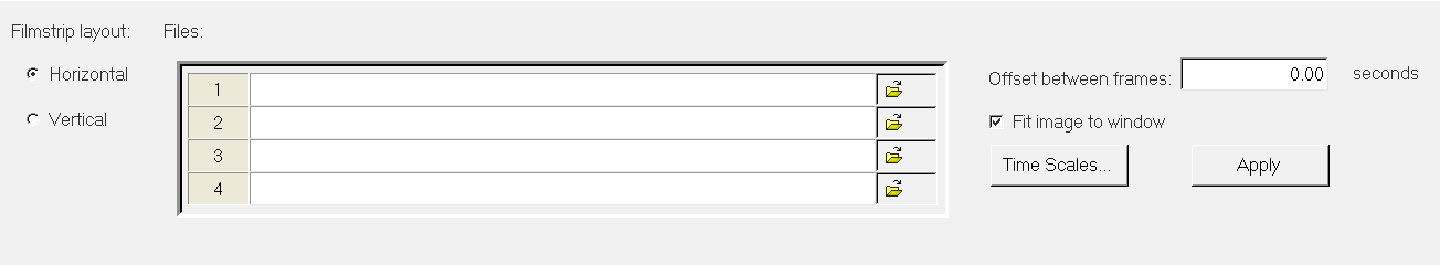 Creates a 4x4 horizontal or vertical page layout that displays a series of frames for up to four media files at specified time offsets.
