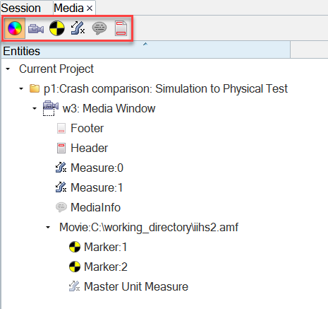 Selecting a predefined browser view mode allows you to quickly filter specific entities from all MediaView windows in the current session.