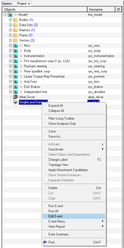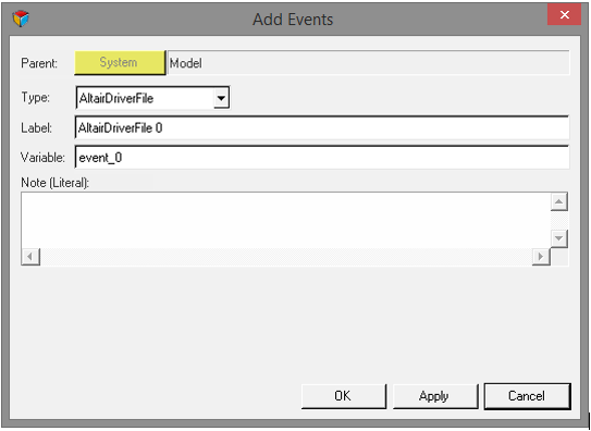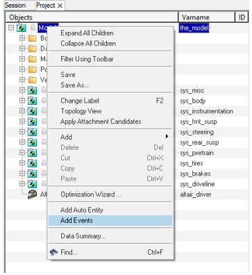 The following steps outline how to add an events to the previously built model. Currently, there are eighteen event types available in the Altair Driver models. See the Event Types topic for additional information.
