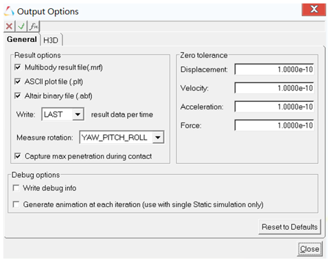 - Solves the XML file browsed in the dialog to MotionSolve.