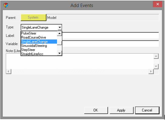 Each event type has different options that need to be addressed. For example, the Single Lane Change event is explained in the following steps.