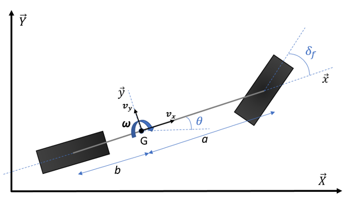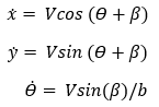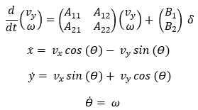 The kinematic equations of the bicycle model are written in terms of coordinates of the vehicle which gives our three degrees of freedom non-linear model