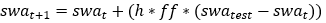 The final steering wheel angle is essentially used as an increment to the current steering wheel angle as shown below. When computing the new steering wheel angle value (at time t+1), the previous value of the steering wheel angle (at time t) is updated by the quantity: