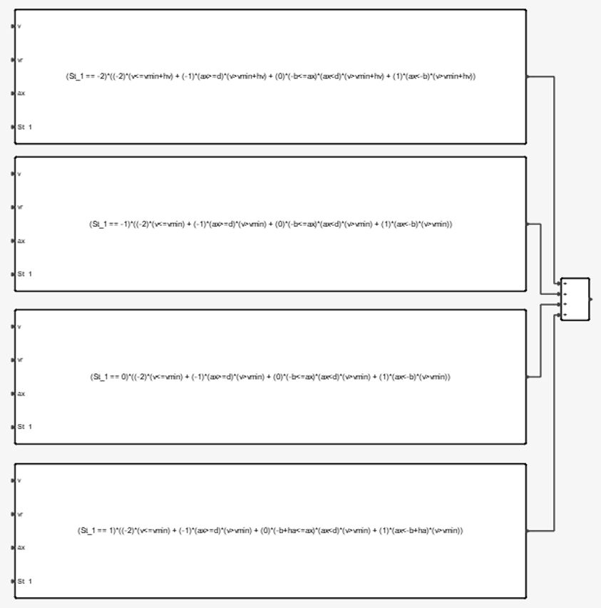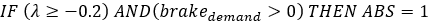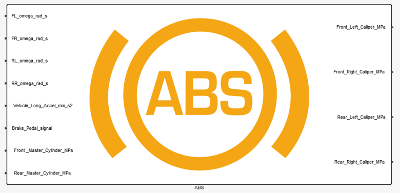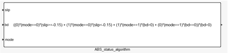Figure 4.Most ABS control algorithms use bang-bang control abruptly switching between states. The ABS controller here switches between three states: “apply”, “hold” or “release” pressure. The controller estimates the wheel slip ratio and wheel angular acceleration and then outputs the desired valve state signal in accordance with the following algorithm:Wheel slip is estimated from the wheel rotational velocity and the vehicles longitudinal velocity as:Where: