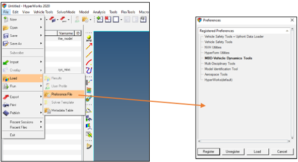 - Load the MBD-Vehicle Dynamics Tools preference file ()
