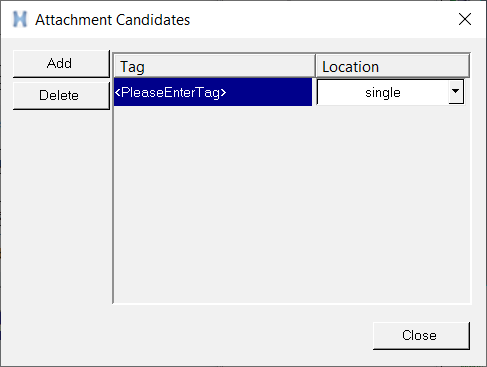 An entity is declared as an attachment candidate by using the Attachment Candidates button in the Entity panel.