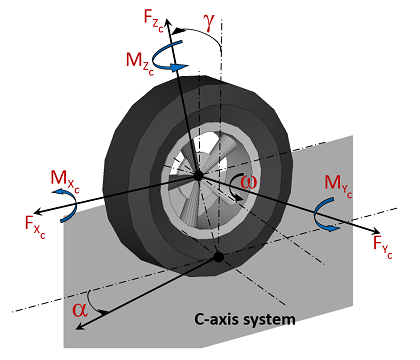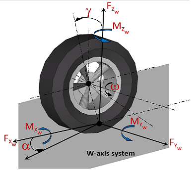 Tire forces and moments with reference to the ISO axis system at the wheel center. | Force Force*Length |