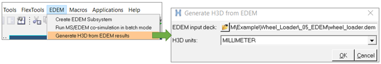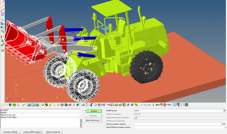 EDEM Subsystem utility in MotionView to create a sub-system that contains the entities needed for the co-simulation. The