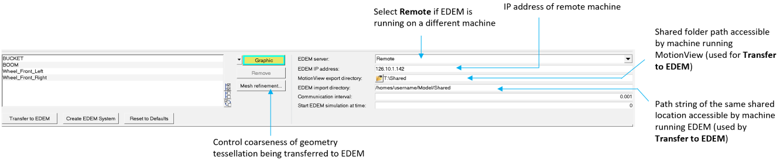 - Local if EDEM are running on the same local machine as MotionView and MotionSolve.
