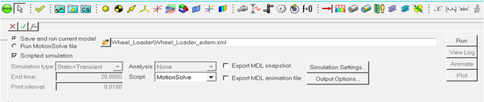 Figure 4. The user-interface for running a MotionSolve + EDEM simulation