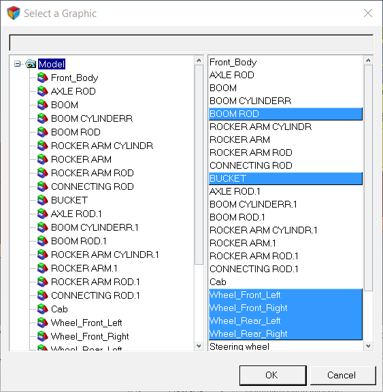 graphics associated with the body will be selected. Graphics of type Box, Cylinder,