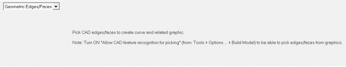 The Create Curve From Points/Nodes/Edges/Faces macro allows you to create curve graphics from a set of selected points or nodes, or extract a curve from an edge/face of a geometry represented through CADGraphics.