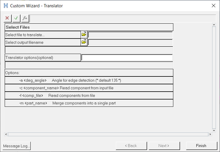 | Finish | After entering the source file and output file names, click Finish to create the file and exit the dialog. |