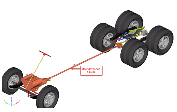 In the single-axle driveline system, the differential is mounted on the rear-front