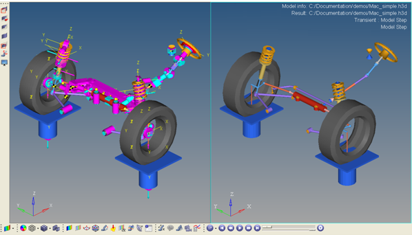 The solver displays several windows as it runs. Close the windows and return to the MotionView interface.At this point, you can plot results, look at an animation, or examine tabular results.