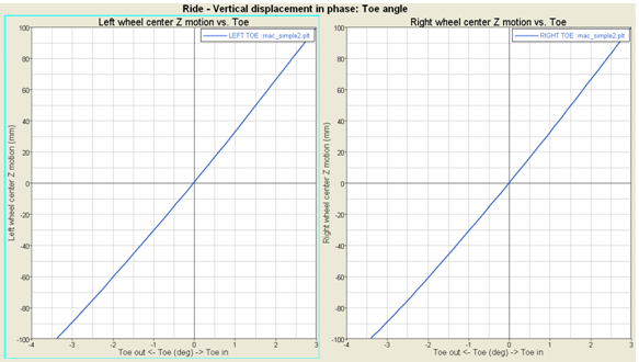Figure 1.Suspension Design Factors can be plotted using HyperGraph. The data is available in either the .req or the .abf file written from MotionSolve. A sample plot is shown below: