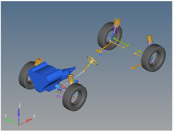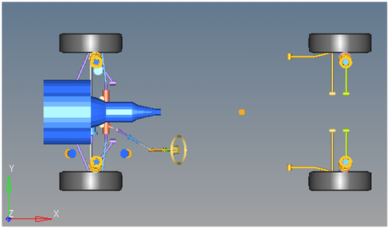 A ball joint is included in the Swept sine event. The joint attaches a dummy body to the steering rack. The joint is included to make certain events work in ADAMS. Attach the dummy body to the steering rack if building a model manually.Motions