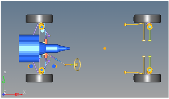 A ball joint is included in the Swept steer event. The joint attaches a dummy body to the steering rack. The joint is included to make certain events work in ADAMS. Attach the dummy body to the steering rack if building a model manually.Motions