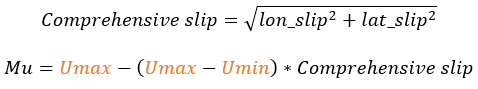 The friction coefficient is calculated by interpolating the Umax and Umin value using Comprehensive slip.