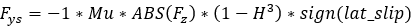 The same critical lateral slip used in the Fy calculation is also used in determining the condition of the tire.