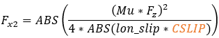 The calculation of the longitudinal force (Fx) depends on the longitudinal slip condition of the tire. Typically, there are two distinct slip states: an elastic deformation state (where the longitudinal slip is less that a critical slip value) and a pure sliding state (where the longitudinal slip exceeds the critical slip value).