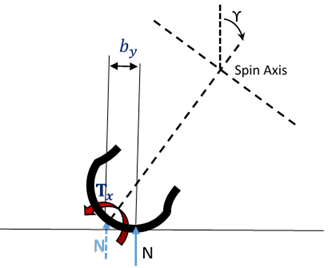 Figure 4. Point of action longitudinal force which creates a moment about the vertical axis