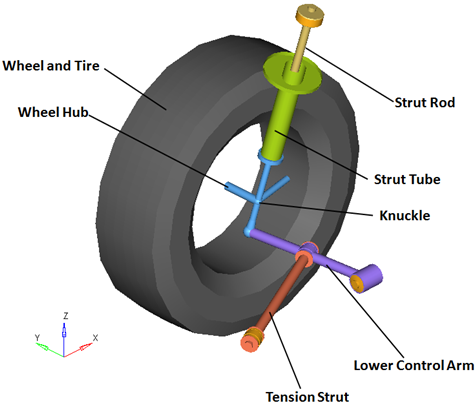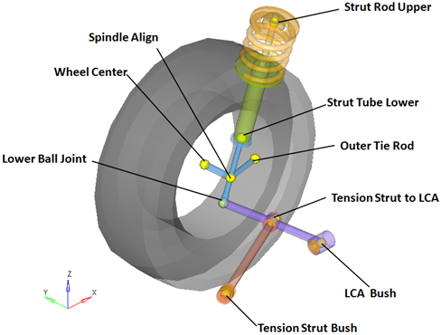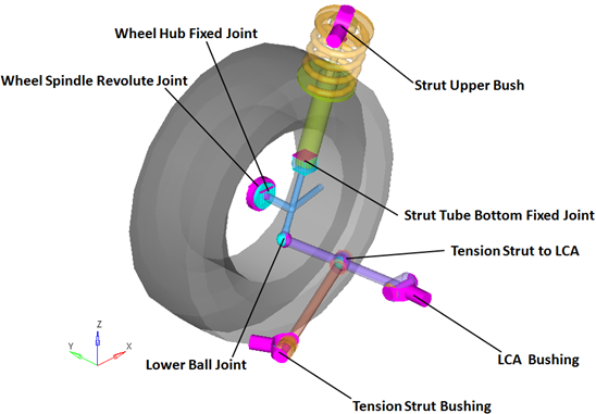 | Tension Strut to LCA | Spherical | Tension Strut | LCA | Tension Strut to LCA | When the Compliant option is set to No, this joint compliance is turned "Off" and behaves as a pure ball joint. |