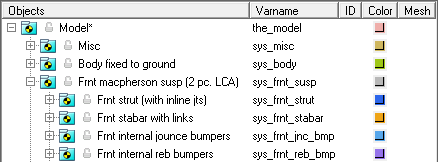 Figure 2. Browser View of a Front-Half-Vehicle Model Systems and Subsystems Employing a Front MacPherson Strut Suspension with Two (2) Piece Lower Control Arm