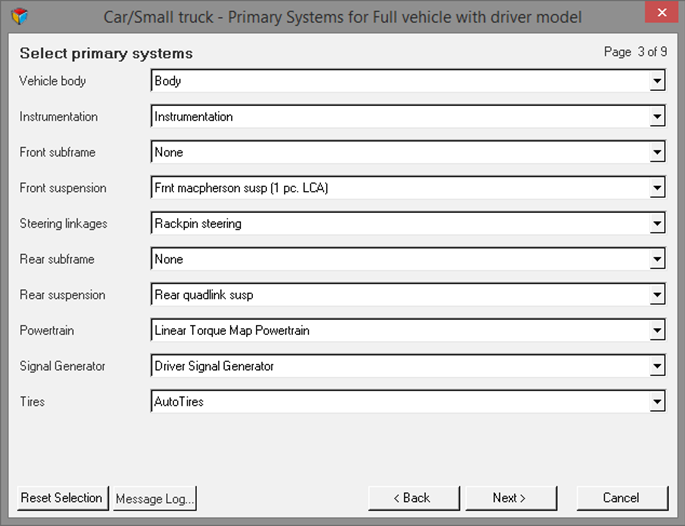 - Select the Full vehicle with advanced driver option from the Model Type window and click Next.