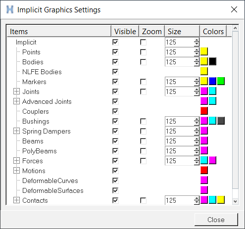 Click Close to close the Implicit Graphics Settings