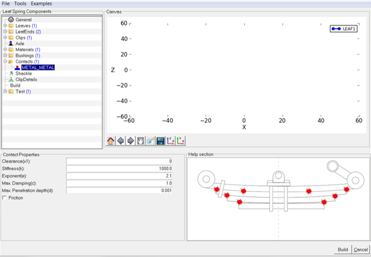 Friction data is required only if you select the friction option. It is used for the contact forces in constructing the leaves. The Coulomb model of friction calculates the friction force as the normal force multiplied by the coefficient of friction. This coefficient is calculated as a function of the slip velocity. It does not support stiction. The following explains the parameters used in the Friction option:- Dynamic Friction Coefficient