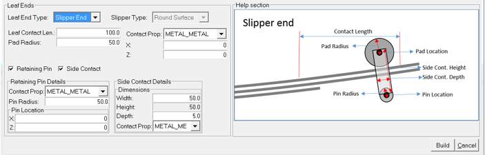 Use Leaf Ends to specify the type of spring ends that you want. There are three types: Eyes, Slipper-ends, and None.