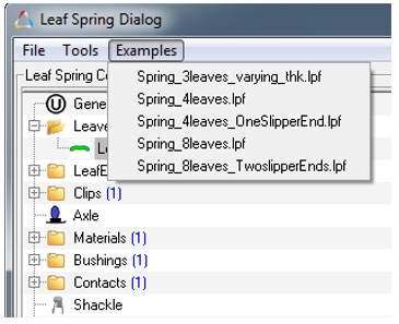 The Leaf Spring Builder saves the data entered to build a model and it can be imported as a Leaf Property File (.lpf) format. If you need to modify the leaf shapes, section properties, material properties or other components of a leaf spring model, you can open the Leaf Property File (.lpf) in the Leaf Spring Builder, make your modifications, and then build a new leaf spring system definition.