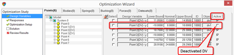 - If the designable entity (whose data-member has been used to create a DV) is deactivated, then such design variable will be greyed out and will not be used in the optimization study.