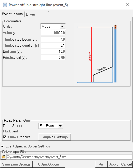 When the road Selection is Flat Road, then the event is run on automatically generated flat road data file.