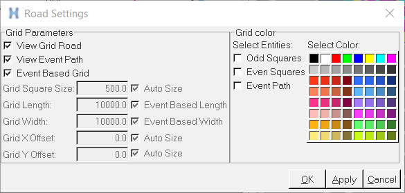 | Grid Square Size | Enter a positive value in model units giving the length and width of squares in the road graphics. |