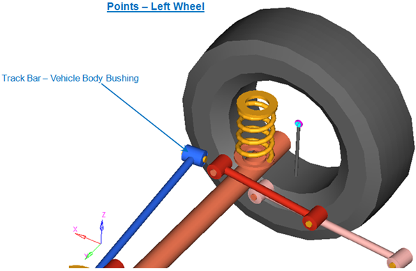 • When the suspension is built as a kinematic suspension, the track bar is removed since it would over constrain the axle. The bushings on the links are replaced with joints.