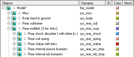 Figure 2. Browser View of a Rear-Half-Vehicle Model Systems and Subsystems Employing a Multi-link Suspension