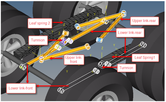 Rear Suspension supports the rear wheels with the help of a solid axle. There are three types of rear suspensions in the truck library.