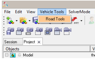 Select Road Graphic Tools from the MotionSolve Vehicle